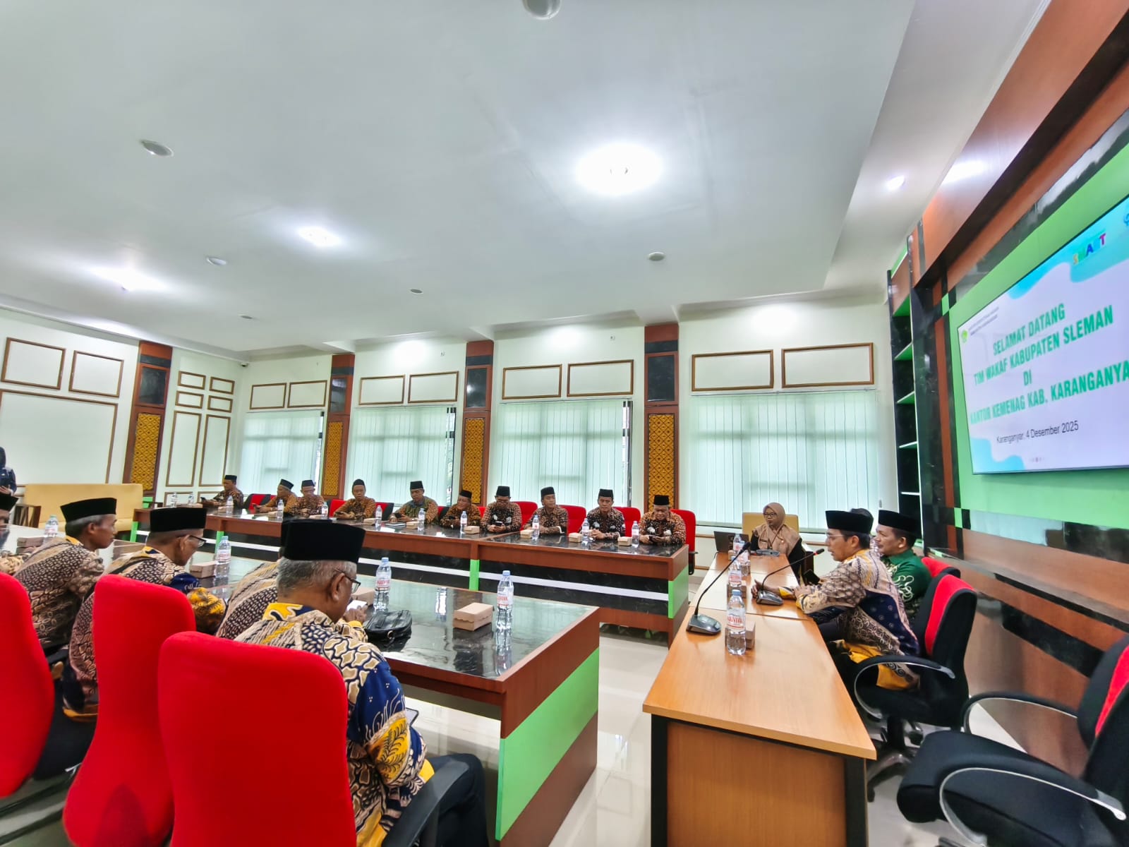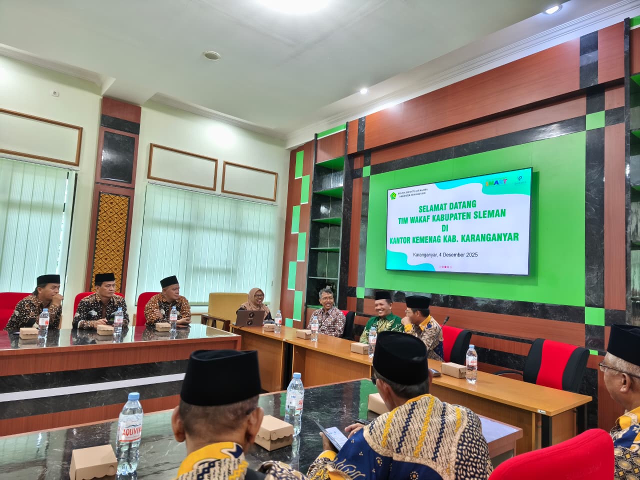 Karanganyar-Dalam upaya meningkatkan kualitas layanan wakaf, Tim Wakaf Kementerian Agama (Kemenag) Kabupaten Sleman melakukan studi tiru ke Kemenag Kabupaten Karanganyar pada Kamis (5/12).
